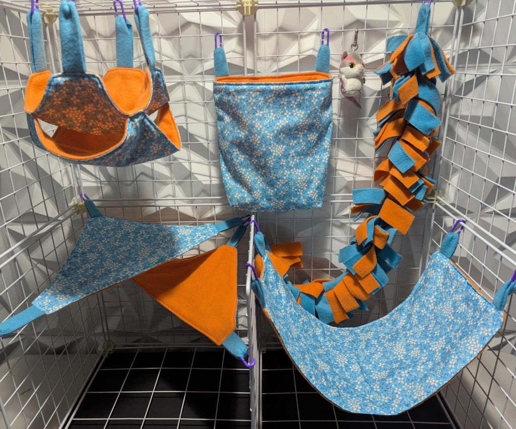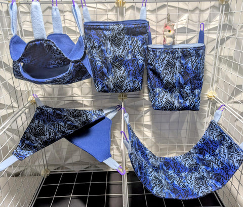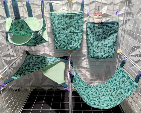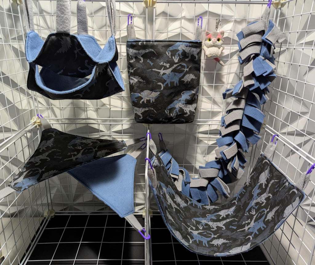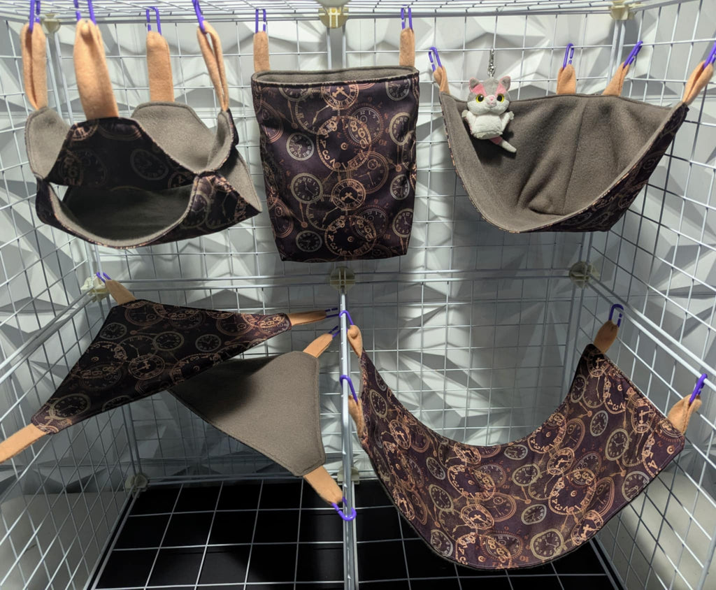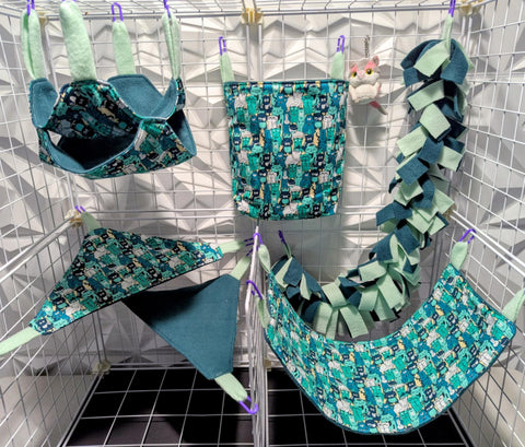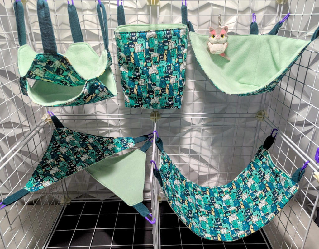 Sugar Glider Safe Cage Sets in cotton or flannel with fleece in a variety of sizes and styles. Expertly stitched with glider safety in mind from an Approved Vendor.